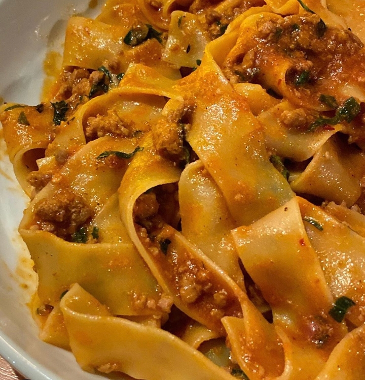 Beef and Pork Ragu, Tomato, Chili, Mint, Orange, Grana Padano