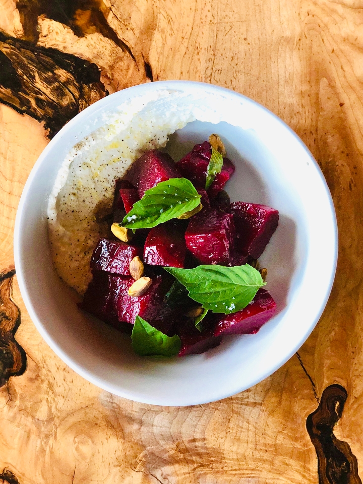 -Ricotta -Pistachios -Orange -Basil -White Balsamic Vinaigrette