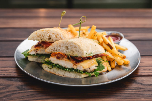 grilled chicken breast / roasted tomato / pesto aioli / havarti / bacon / arugula / 1058 cal