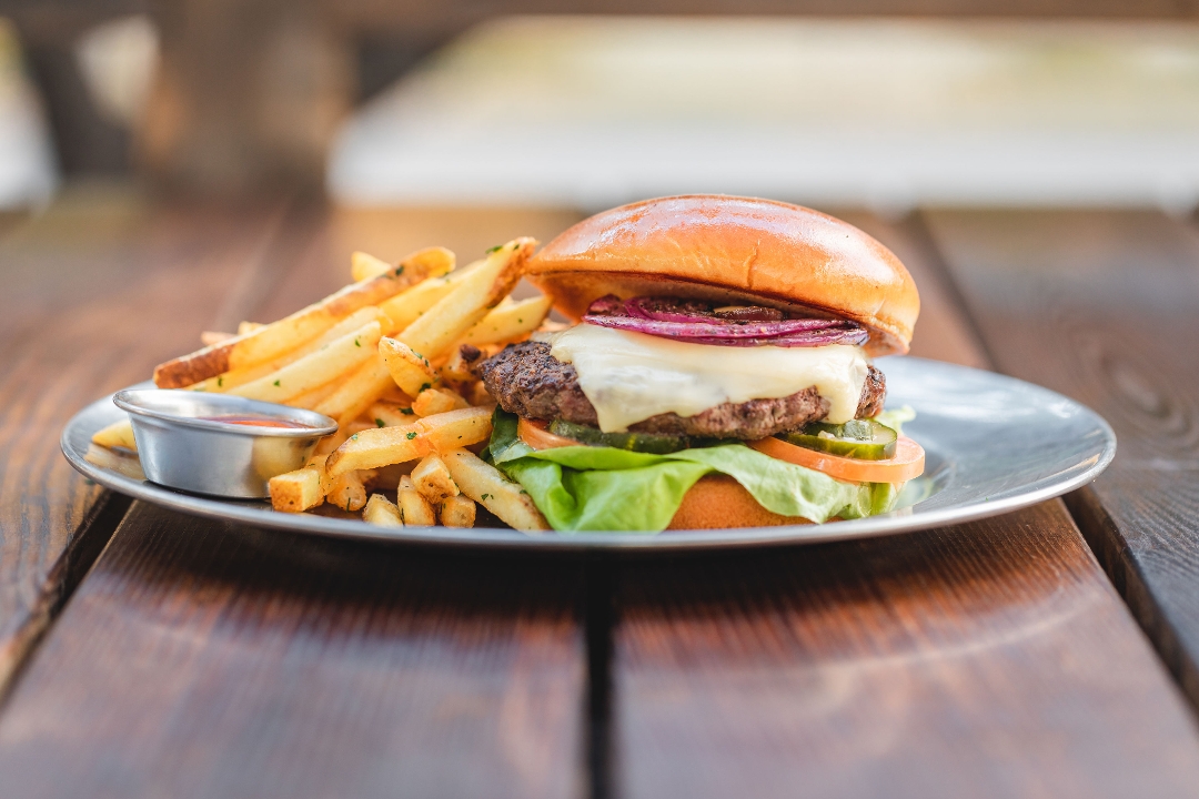American Swiss / grilled red onion / lettuce / pickles / tomato / special sauce / served with signature fries / 1045 cal per serving // * Our food is cooked to order and to our guests’ temperature request. Consuming raw or undercooked meats, poultry, shellfish or eggs may increase your risk of foodborne illness.