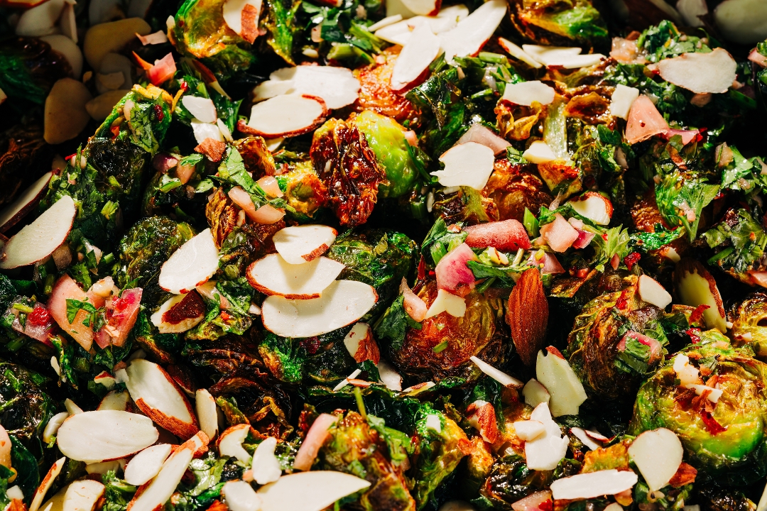 orange chile glaze / chimichurri / almonds / 254 cal