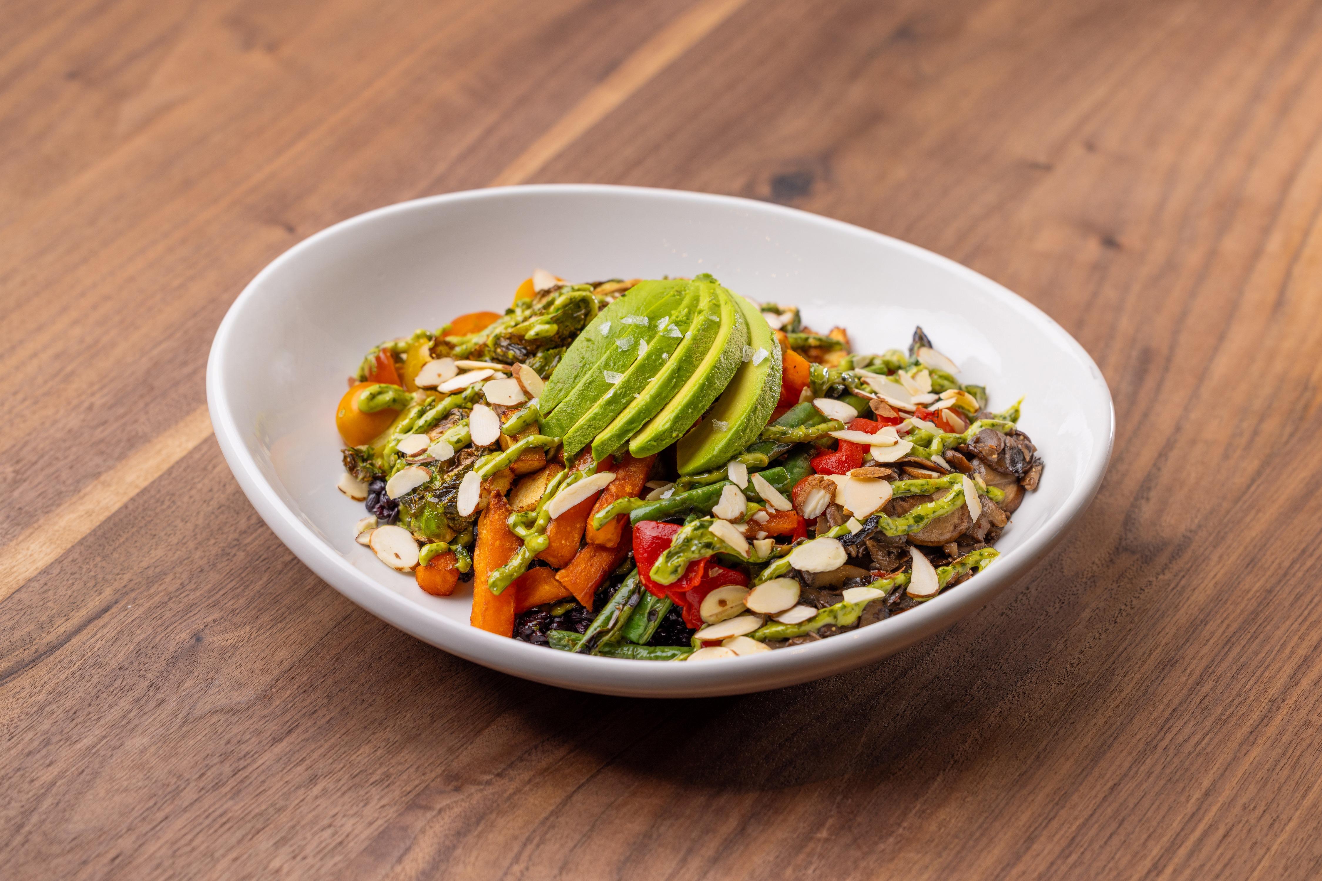 black rice / soy sauce / guacamole / firecracker aioli / furikake / green onion / Fresno chiles / sesame ginger vinaigrette / 735 cal *Our food is cooked to order and to our guests’ temperature request. Consuming raw or undercooked meats / poultry / shellfish or eggs may increase your risk of foodborne illness.