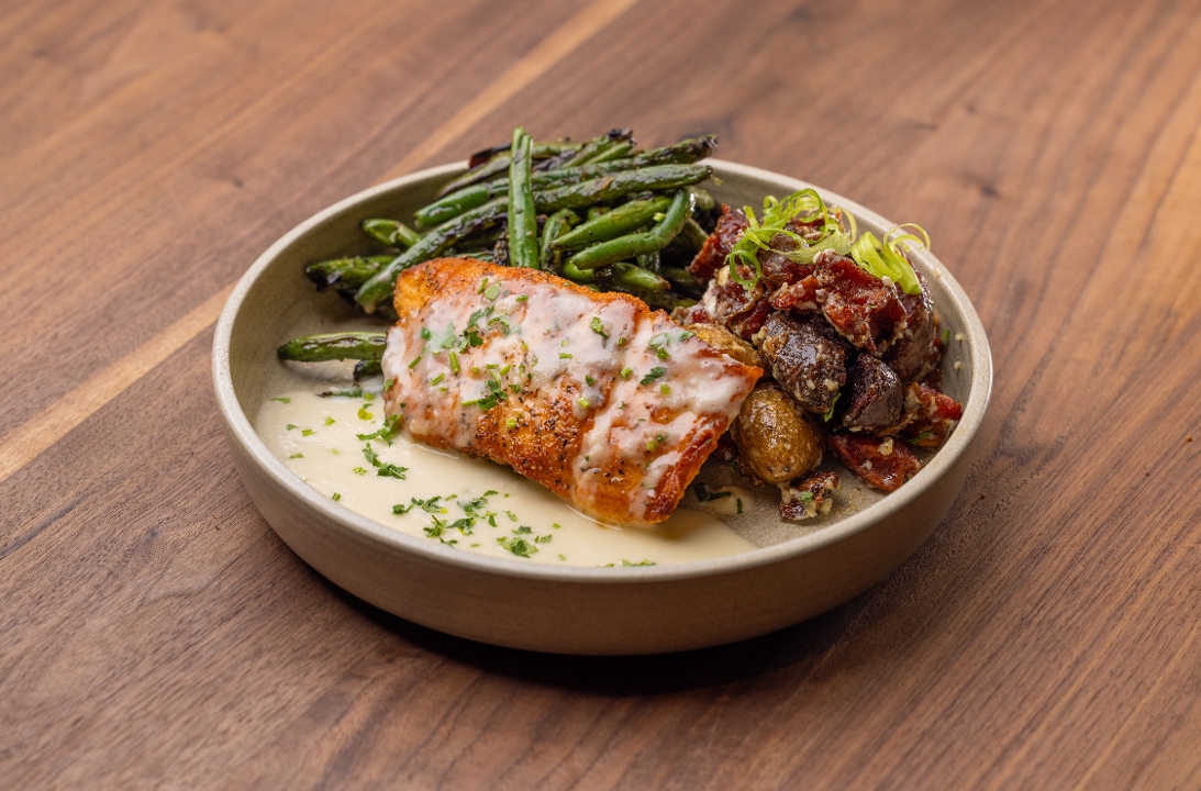 beurre blanc / ripped fingerling potatoes / charred green beans / 987 cal