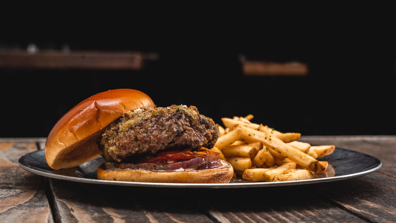 bone marrow shiitake butter / grilled onion / horseradish mustard aioli / roasted tomato / 898 cal