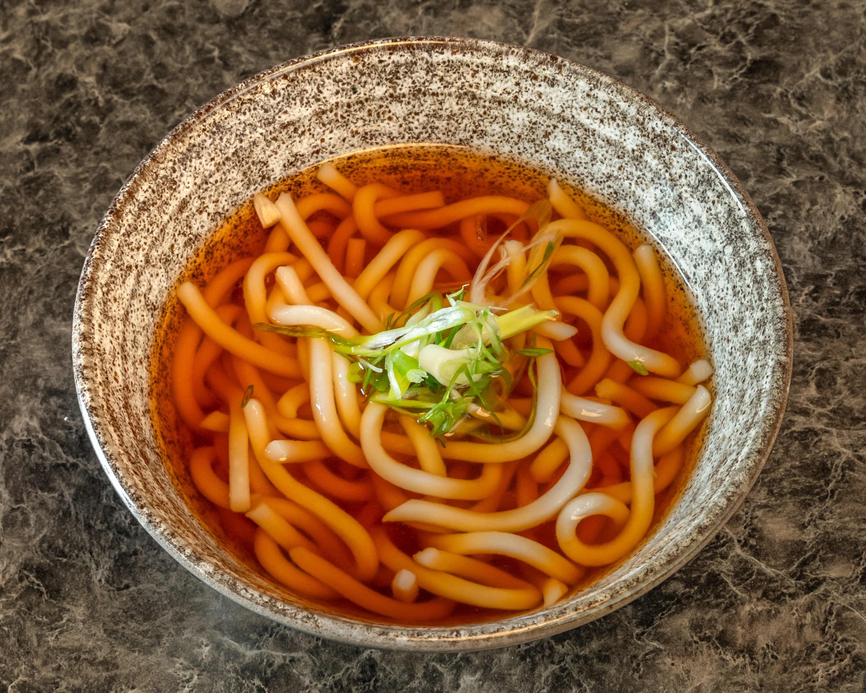 Thick, chewy udon noodles in a savory, umami-rich broth