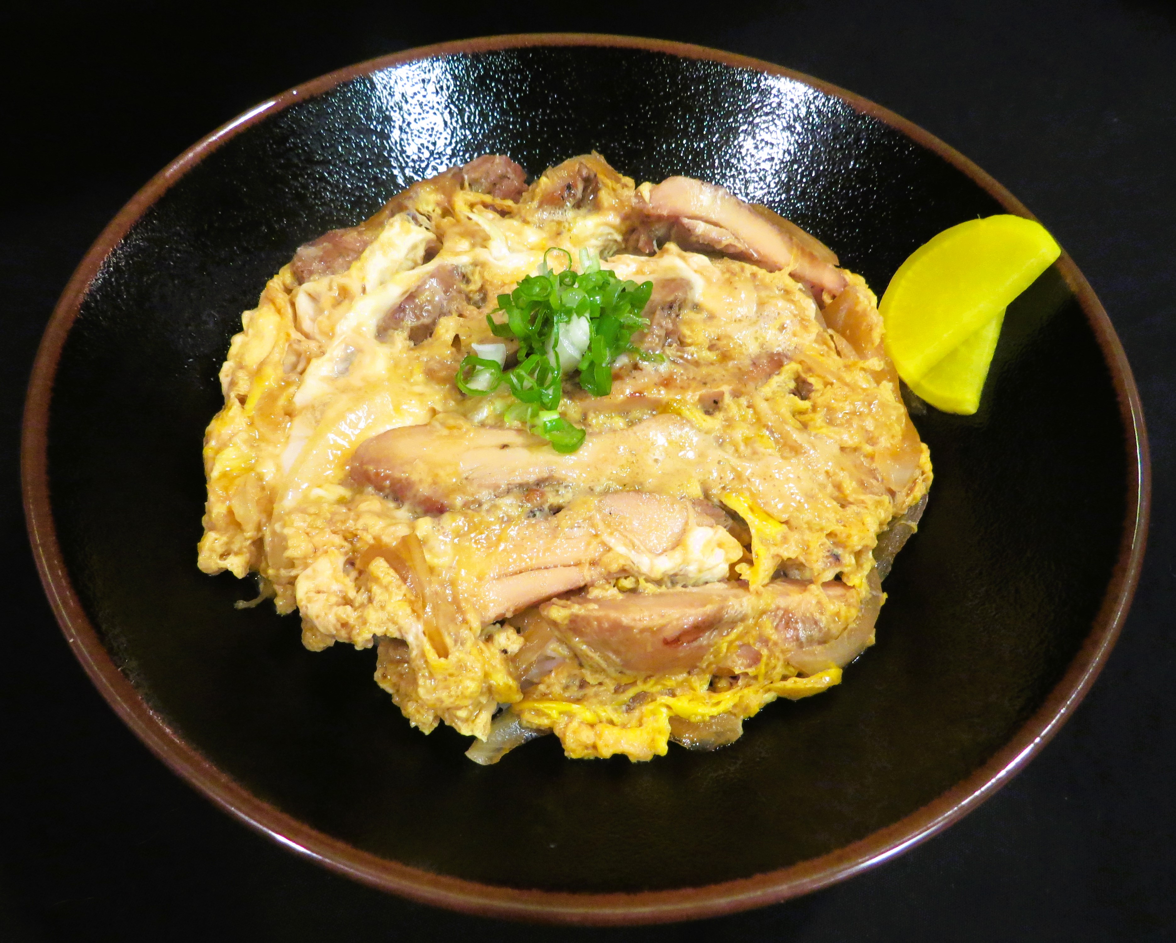 Donburi with panko-crusted pork cutlet
